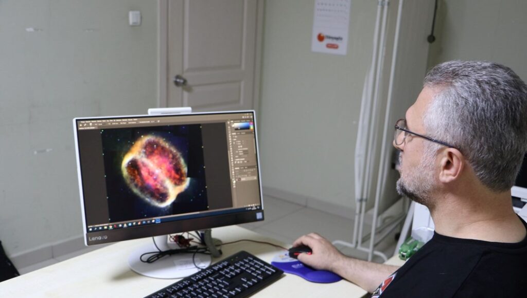“Bu çalışmaları bazen kendi ekipmanımla yapıyorum, bazen de uzaktaki teleskoplardan veya NASA’nın uzaydaki teleskoplarından elde ettiğim görüntüleri işleyerek gerçekleştiriyorum. Gök cisimleri genellikle çok sönüktür. Bu yüzden ışığı toplayabilmek için özel kameralar ve teleskoplarla, sensörleri uzun süre açık tutarak görüntü alıyoruz. Elde edilen bu görüntüler daha sonra çeşitli programlarla işlenip, üst üste istiflenerek daha net ve aydınlık hale getiriliyor. Her bir gök cismi için farklı filtreler ve renkler kullanıyoruz.
