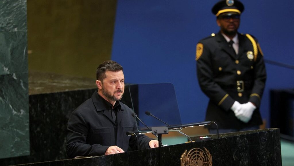 Ukrayna Devlet Başkanı Volodimir Zelenski, Birleşmiş Milletler Zirvesi’nde konuşma yapıyor.