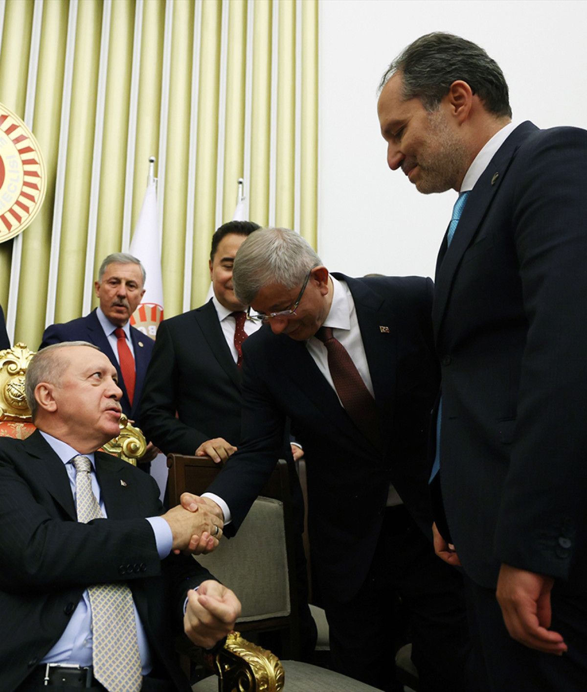 Resepsiyona Cumhurbaşkanı Erdoğan da katılırken MHP Genel Başkanı Devlet Bahçeli, DEM Parti Eş Genel Başkanları Tuncer Bakırhan ve Tülay Hatimoğulları Oruç, DEVA Partisi Genel Başkanı Ali Babacan, Gelecek Partisi Genel Başkanı Ahmet Davutoğlu, Büyük Birlik Partisi Genel Başkanı Mustafa Destici, HÜDA PAR Genel Başkanı Zekeriya Yapıcıoğlu ve milletvekilleri ile sohbet etti.