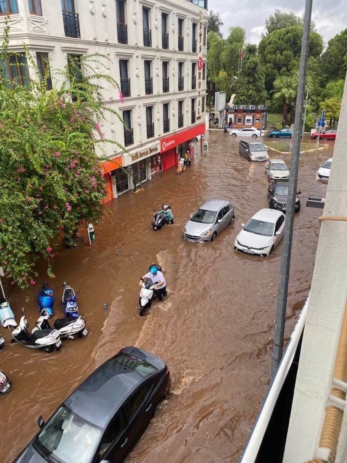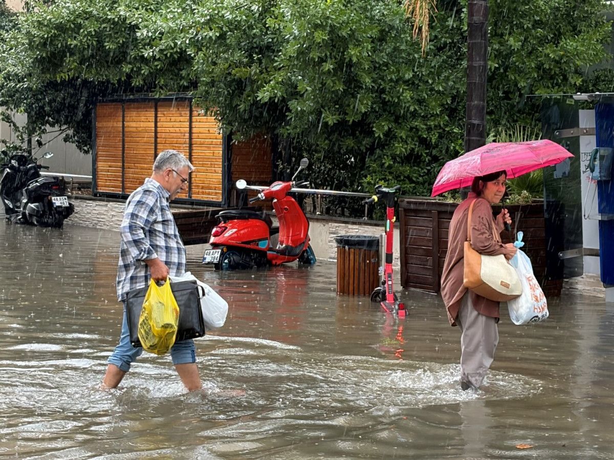 Bölgede rögarların taşması sonucu sokaklar göle dönerken, bazı otellerin giriş katlarını su bastı.