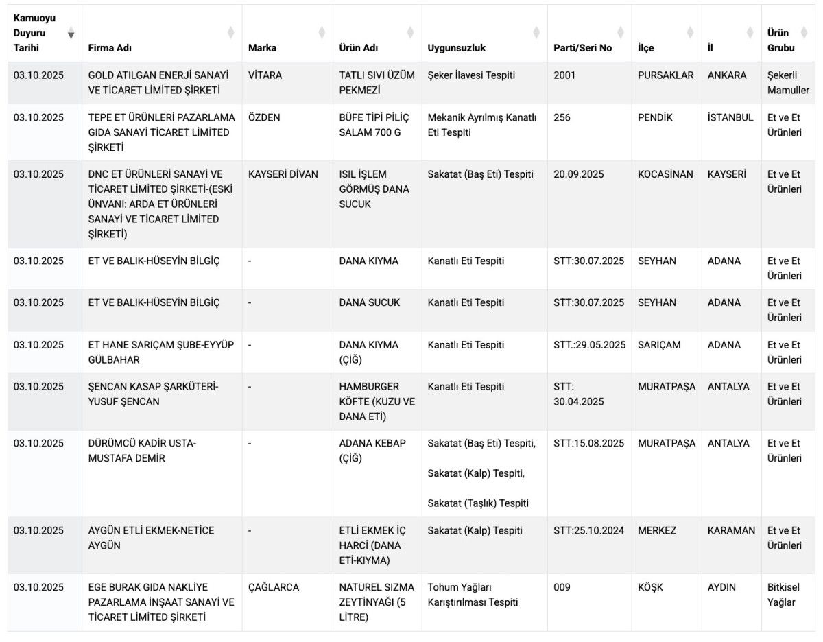 Sağlığı tehlikeye atan gıdalar listesine yeni firmalar katıldı