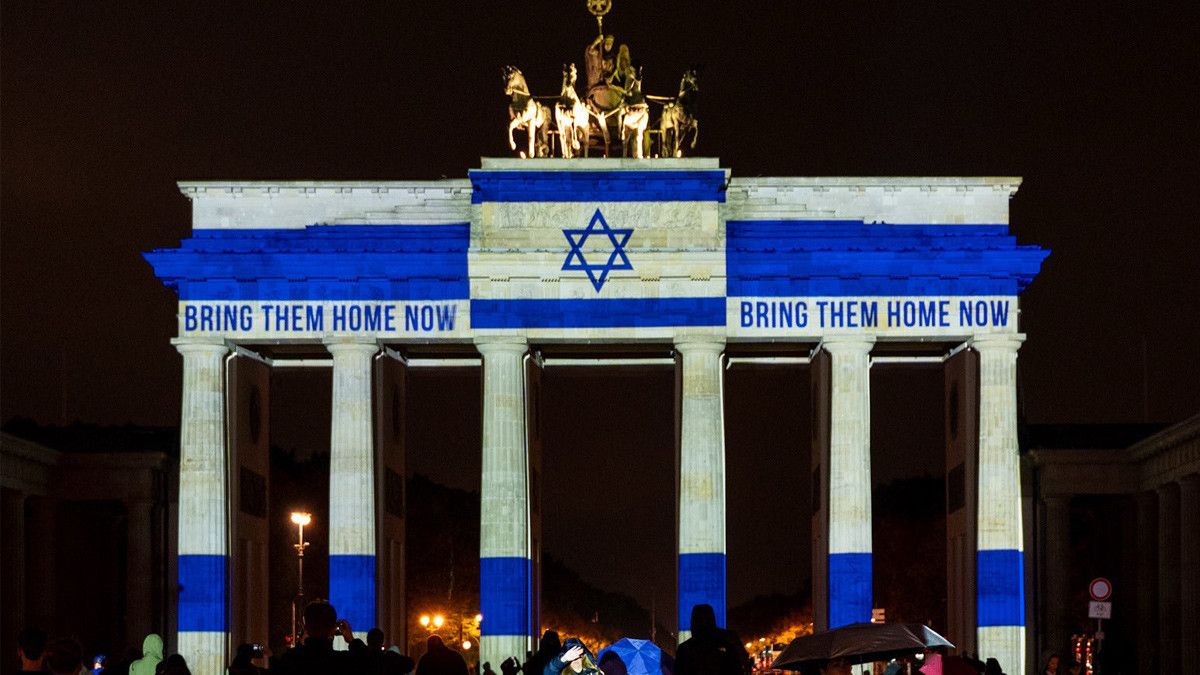 Öte yandan Almanya’nın en turistik ve ünlü noktalarından Brandenburg Kapısı bu akşam İsrail bayrağı ile renklendirildi.
