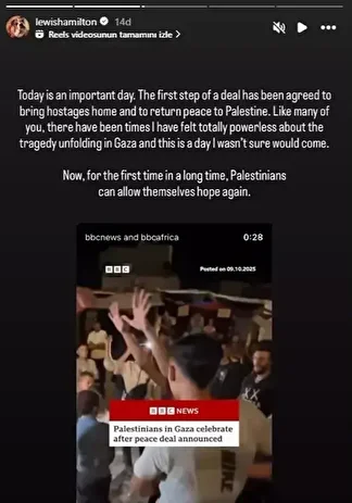 Lewis Hamilton’dan Gazze paylaşımı: ‘Filistinliler yeniden umut edebilir’ Lewis Hamilton’dan Gazze paylaşımı: ‘Filistinliler yeniden umut edebilir’