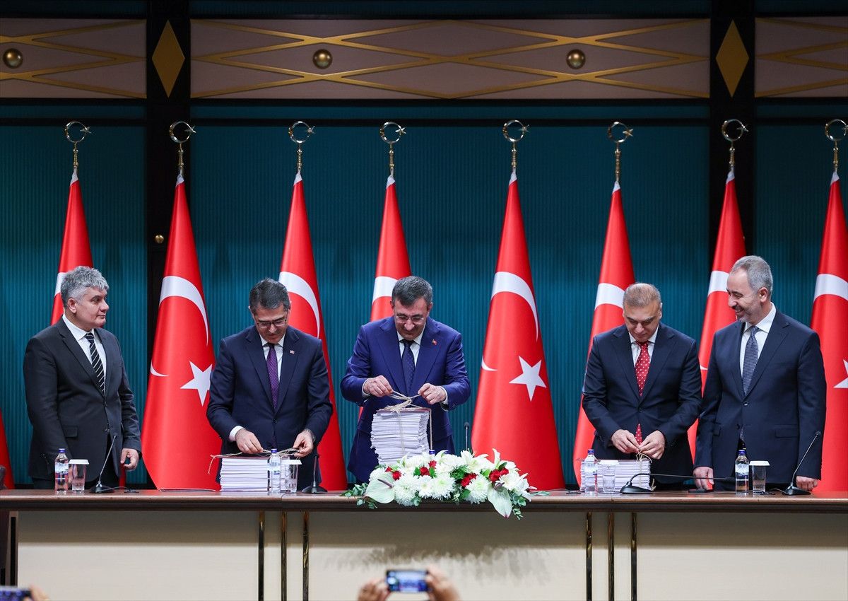 Cumhurbaşkanı Yardımcısı Cevdet Yılmaz, Cumhurbaşkanlığı Külliyesi’nde düzenlenen bütçe bağlama toplantısında, Türkiye Büyük Millet Meclisi’ne (TBMM) sunulmaya hazır hale gelen, 2025 Yılı Merkezi Yönetim Bütçe Kanunu Teklifi hakkında bilgi verdi.