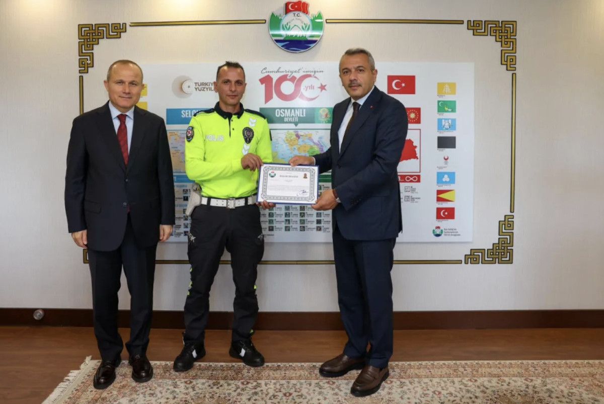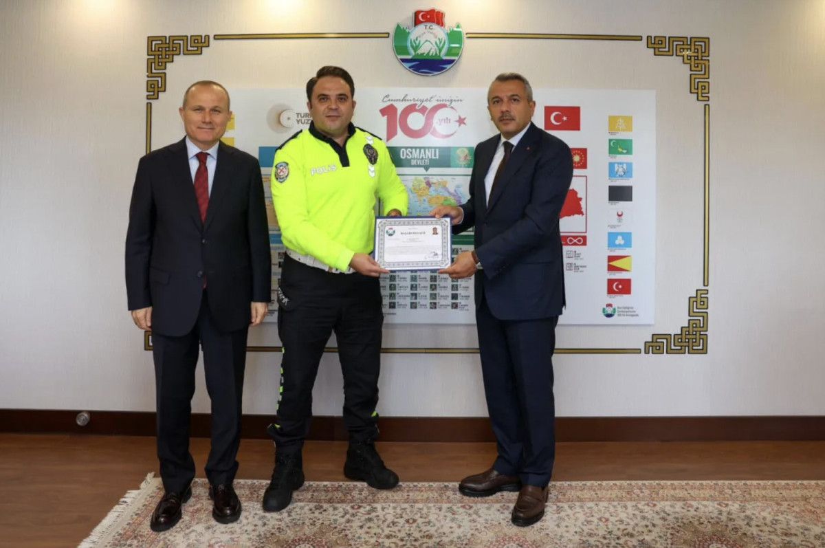 El fenerini aldım, el feneriyle gelen trafiği tek yöne doğru işaret ettim ve geçirdim dedi. Önemli bir inisiyatiftir. Onu fark edince de teşekkür ettim görev bilincinden dolayı.
