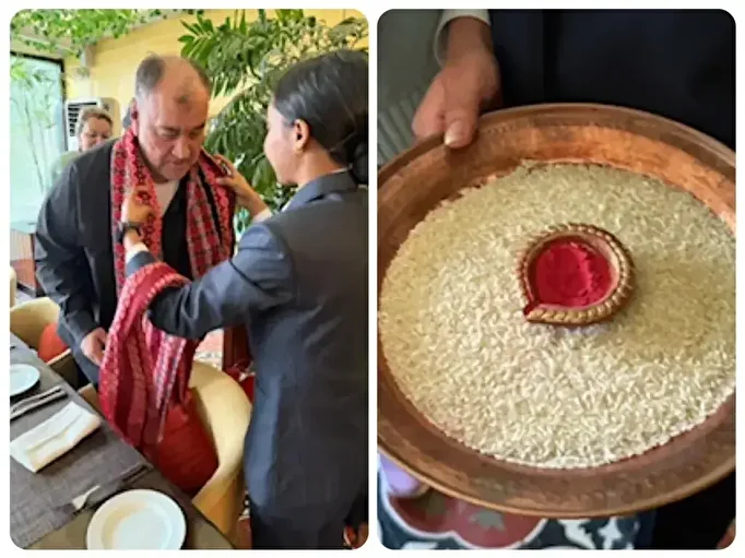 Gün batımında bizi bu diyarlara davet eden Nepal’in bilinen Chaudhary ailesinin evine ziyarete gittik. Girişte çok kollu, azman bir Ganeşa putu heykeli bizi karşıladı. Hinduizm’de engelleri kaldıran put Ganeşa eşikte misafire yol açıklığı demektir.
