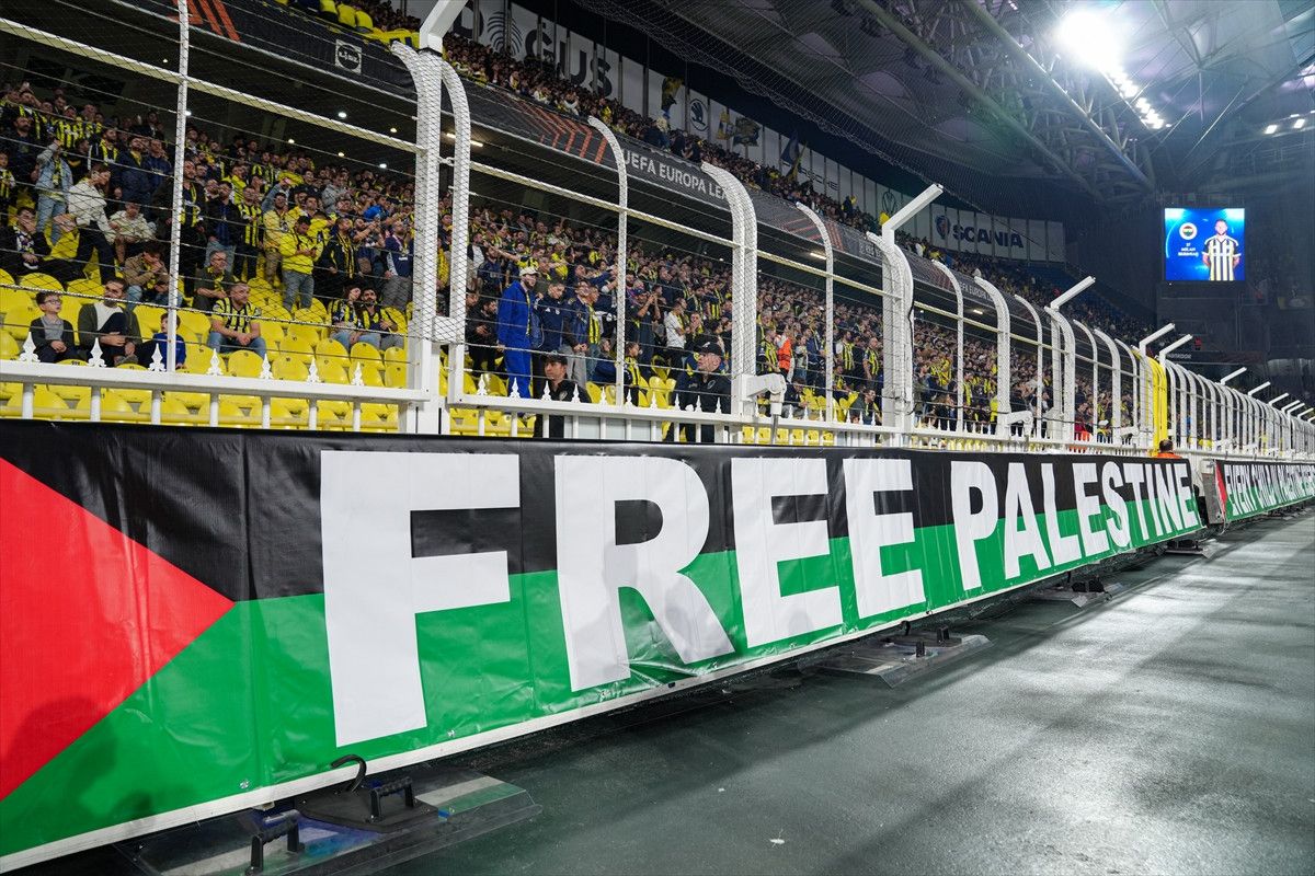 • Fenerbahçe taraftarları, Şükrü Saraçoğlu Stadyumu’nda Filistin’e destek pankartları açtı.