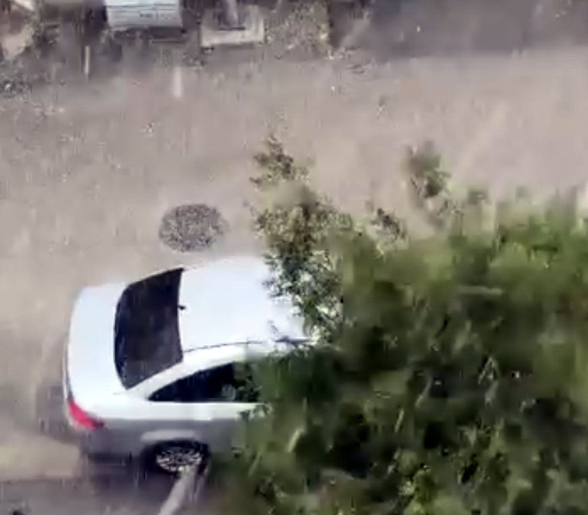 Dolu yağışı vatandaşlar tarafından cep telefonu kamerasıyla görüntülendi.