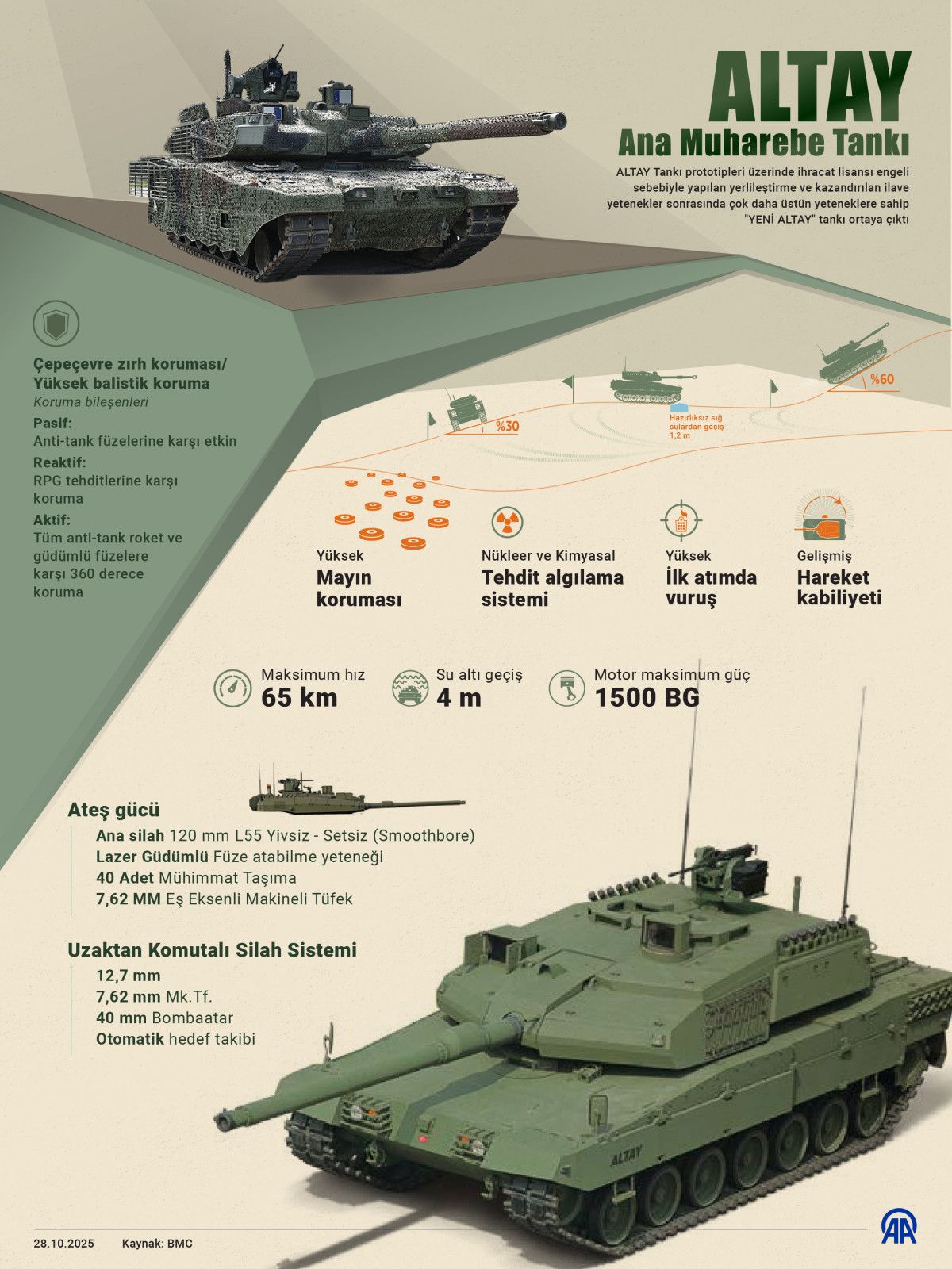 - Türk Silahlı Kuvvetleri, modern savaş ihtiyaçlarına uygun 3 yeni ALTAY tankını envanterine ekledi.