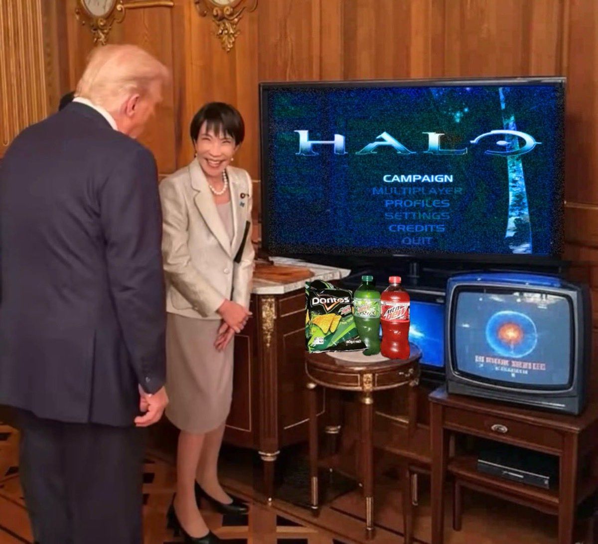 Japonya’ya büyük bir saygı duyduğunu yineleyen Trump, “Şimdi, Japonya’nın yeni ve inanılmaz başbakanına, tarihteki ilk kadın başbakanına gerçekten büyük bir saygı duyuyorum.” şeklinde konuştu.