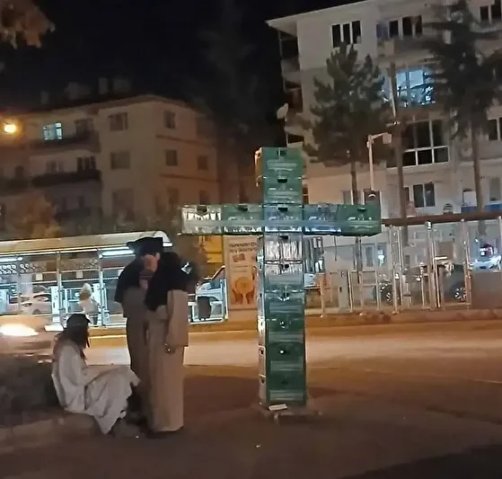 Eskişehir’de bira kasalarıyla haç işareti yapan 3 kişi gözaltında.