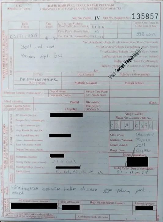 Ekip otosunu yaya yoluna park eden polis memuruna trafik cezası kesildi.