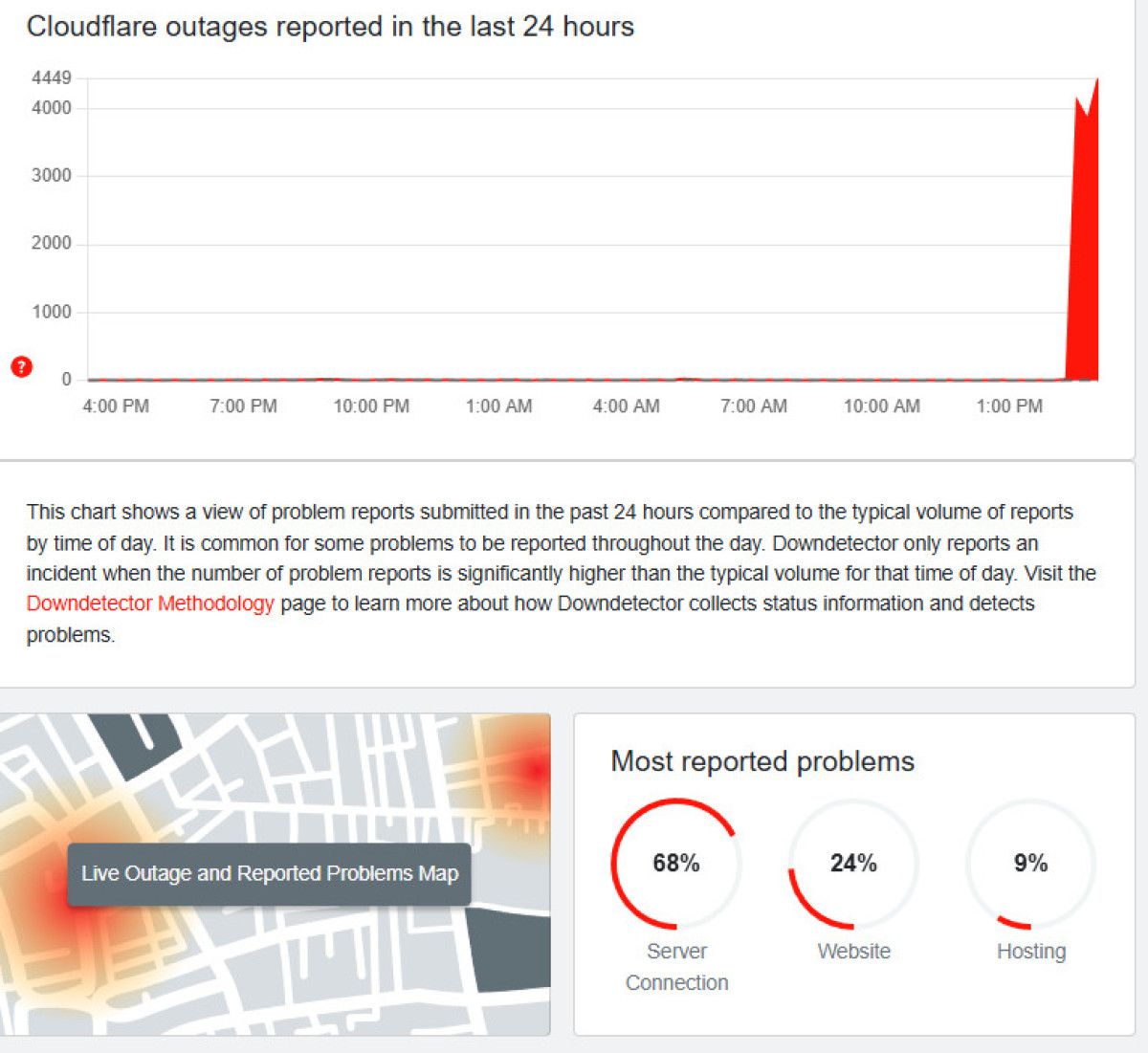 İnternet sitelerindeki erişim sorunlarını raporlayan ve anlık durum bilgisi veren ünlü izleme sitesi Down Detector da bu büyük kesintiden nasibini aldı.