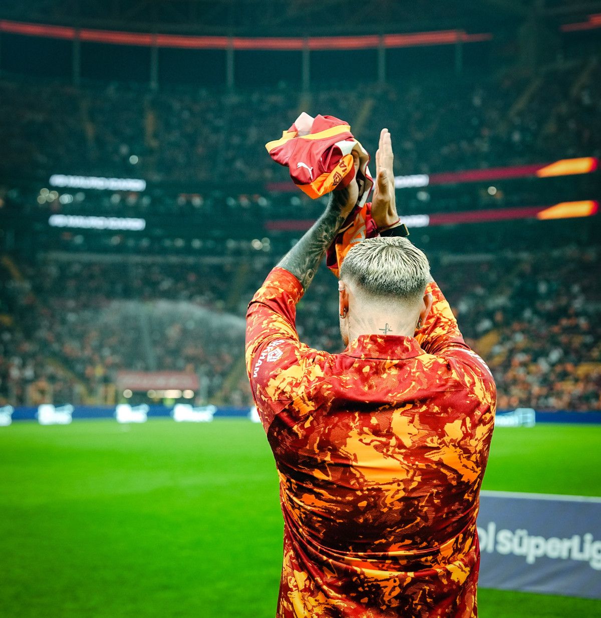 Bu sırada stat hoparlörlerinden şarkıcı Simge’nin ‘Aşkın olayım’ şarkısı çalarken, taraftarlar da Icardi’ye alkışlayarak destek verdi.