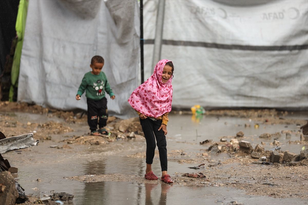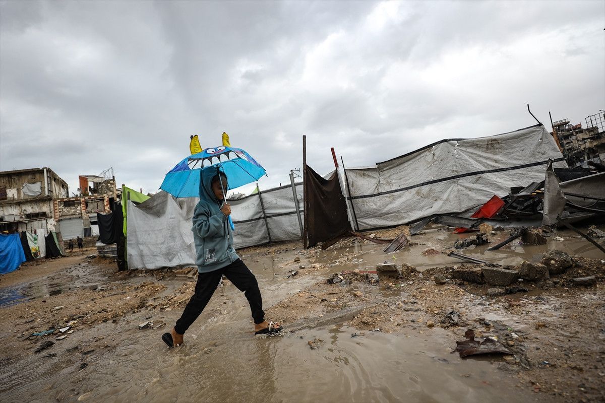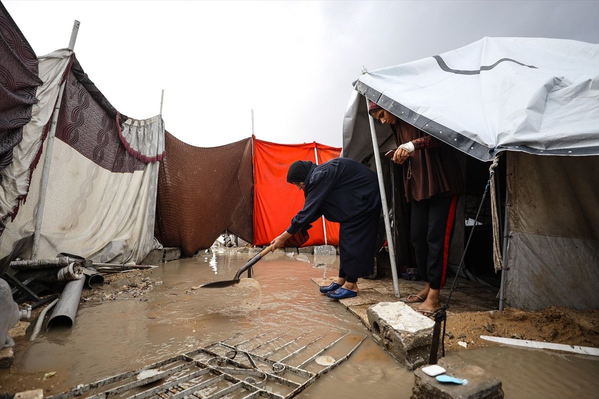FİLİSTİNLİLER YAĞMUR ALTINDA HAYATTA KALMA MÜCADELESİ VERİYOR
