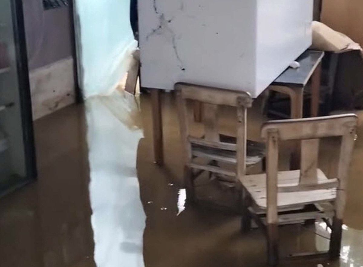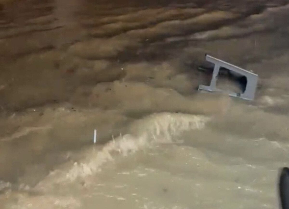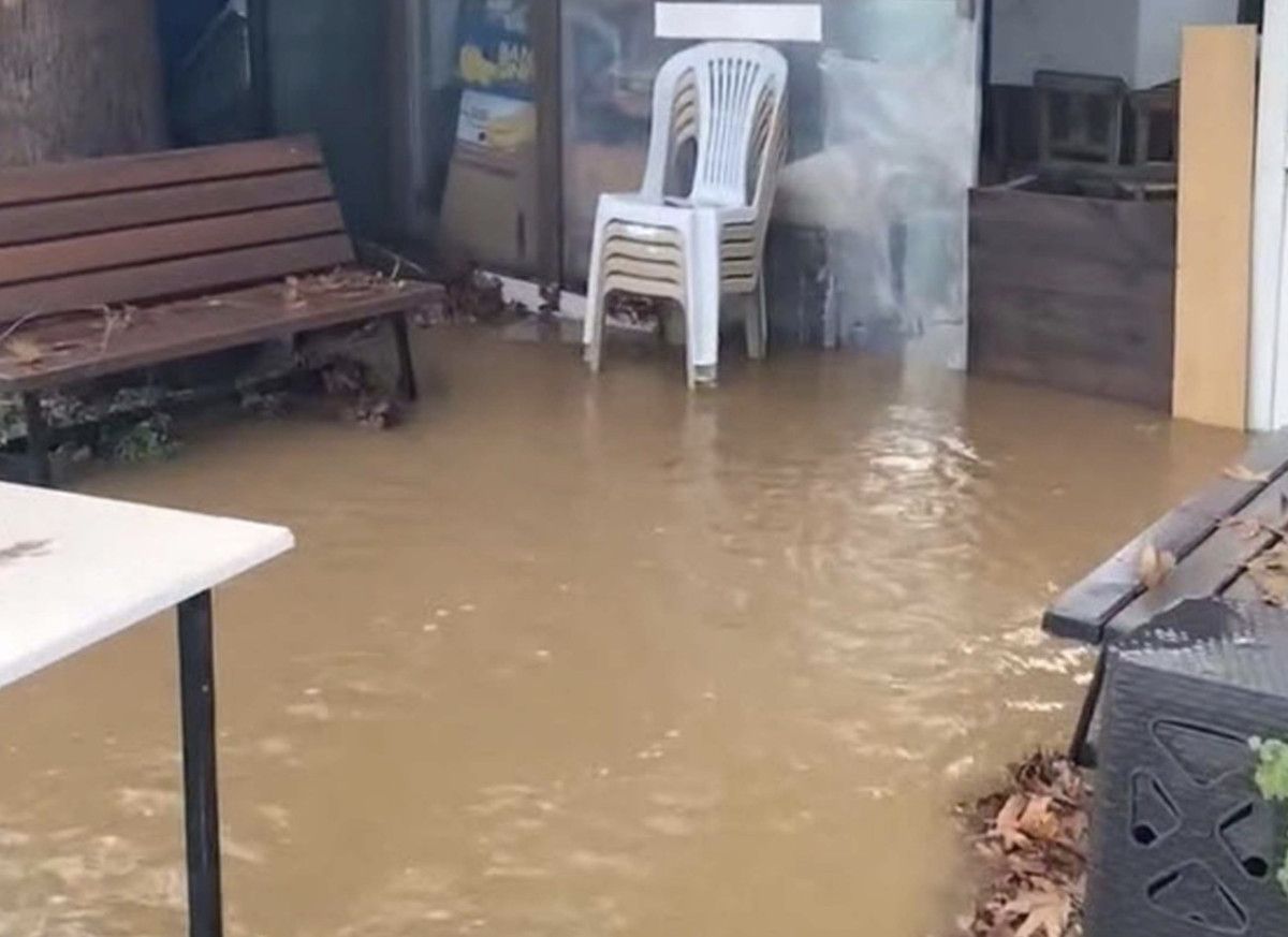 Görüntülerde; kafeteryaya ait bir taburenin sulara kapılıp, sürüklendiği anlar yer aldı.