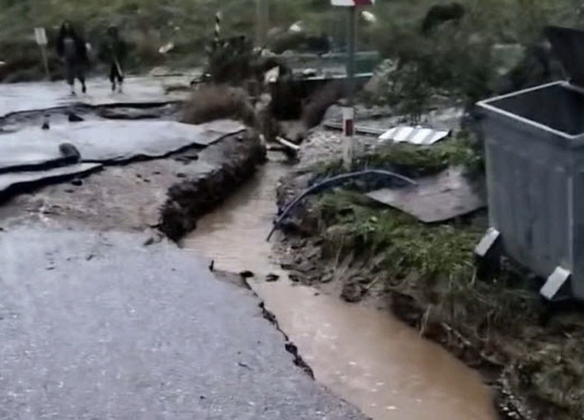 Yağışın en yoğun hissedildiği Karaburun’da, Badembükü mevkisinde zemini yumuşayan asfalt yollarda çukurlar oluştu.
